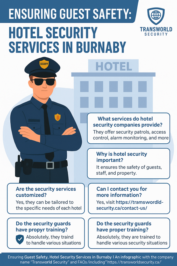 - Hotels in Burnaby may maintain their image by working with Transworld Security, therefore guaranteeing guest safety in Burnaby always.
